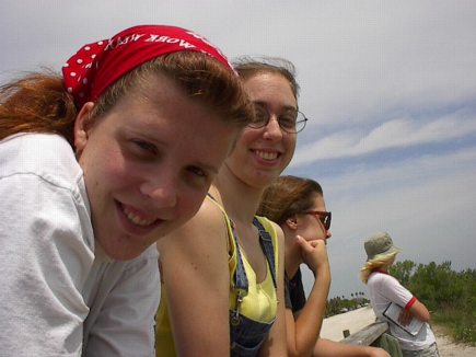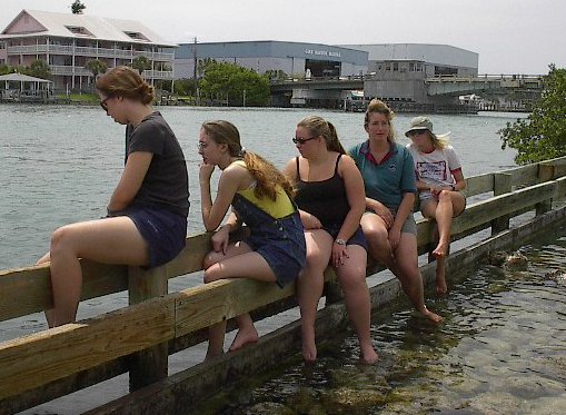Ali and her friends (and Julia B. in back) lean over the railing to get a better look at the water. No sign of the dolphin yet.